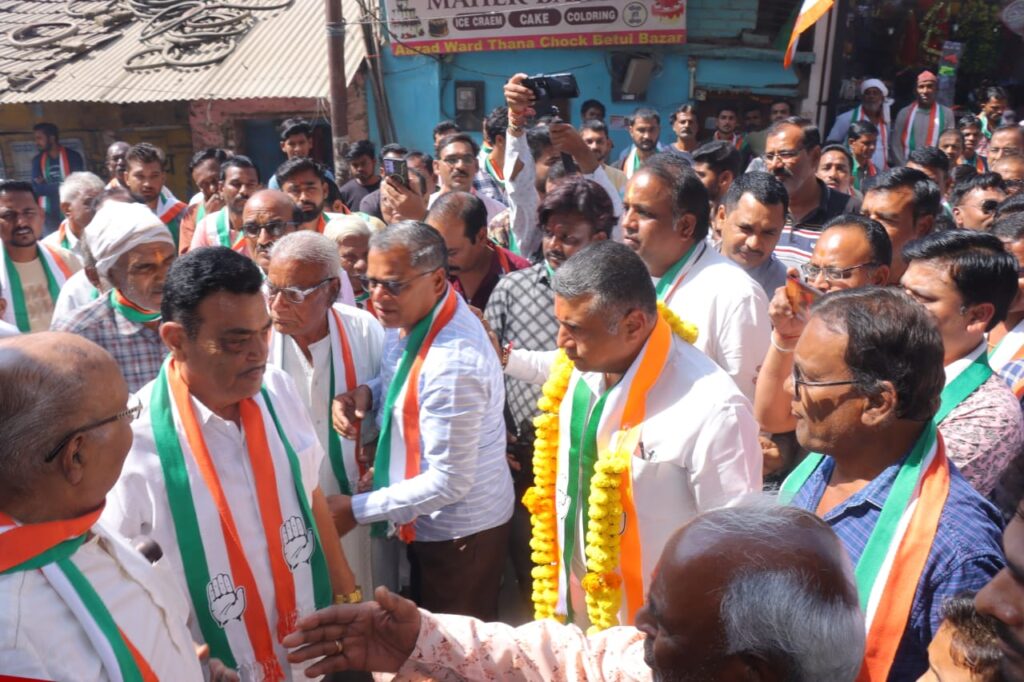 बैतूल।। 4 नवंबर कांग्रेस चुंनाव कार्यालय से जारी विज्ञप्ति के अनुसार विधान सभा चुनावों के द्रष्टिगत रखते हुए शनिवार कांग्रेस प्रत्याशी निलय विनोद डागा की मौजूदगी में बैतूल बाजार में कांग्रेस कार्यालय का भव्य शुभारम्भ किया गया। कार्यालय का शुभारंभ नगर के उन वरिष्ठ कांग्रेस जनों के हाथों कराया गया। जिन्होंने स्व, विनोद डागा के कंधे से कंधा मिलाकर आज भी क्षेत्र में कांग्रेस को मजबूती के साथ खड़ा कर रखा है।